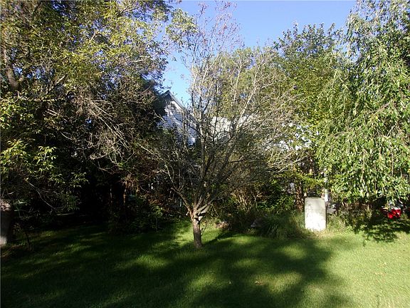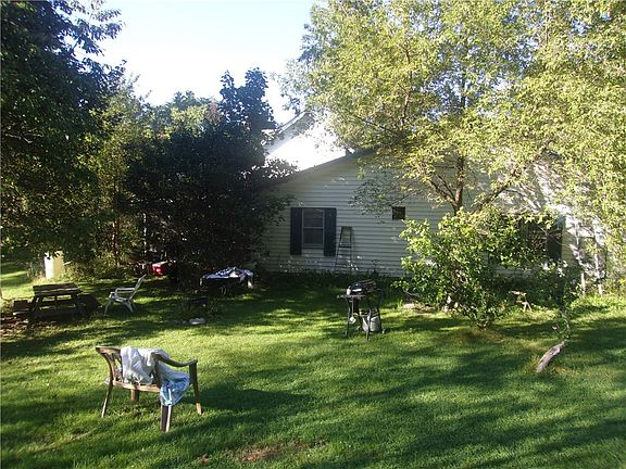 Late 1800's farmhouse.  Had been moved back from near road about 1997 by prior owner.  PLaced on a new concrete block foundation.  Family room added at that time as well as laundry and back office and the attached garage.  In-floor radiant heat in part of basement as well as kitchen, laundry, office and back hallway.  Has the nicest staircase to basement you will see anywhere.  Large front yard, picnic area in back yard grove and approximately 1 acre of pine trees.  Fruit trees scattered about yard.  Curved gravel driveway leads past a small barn with overhead door for additional car parking  space.  Porch at kitchen entry and front porch into dining room.  Screen porch tucked away behind dining area of family room.  The interior is somewhat cluttered (a collector had lived here) so many things you will see will also be sold in a future sale or auction.  Additional shed and (non-functional) outhouse just used for storage also in rear yard.