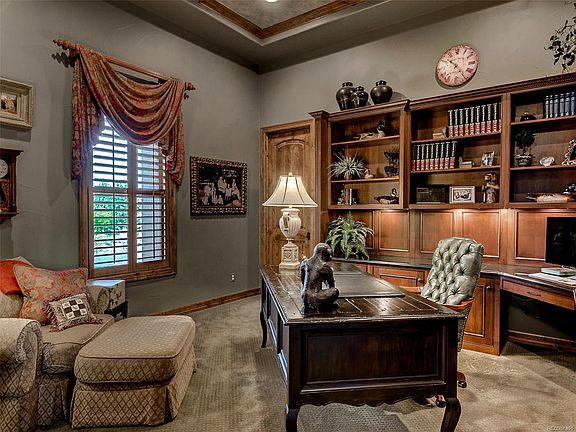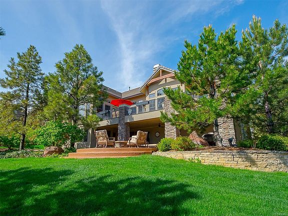 Stunning home located on one of Castle Pines premier sites featuring the ultimate privacy, open space, city and golf course views. Landscaping and outdoor living spaces are amazing. Fabulous decor, with many custom features. Inviting master suite with fireplace, large walk-in steam shower and great closet. Fabulous gourmet kitchen, Sub zero, Miele, Wolf and Viking. Custom cherry cabinets with dove tail drawers, soft close and full extension. Custom closest and pantries. All interior walls and floors are insulated for sound proofing. Downstairs features a great entertainment area, with bar and beautiful wine cellar. Whole house audio/visual system. You will love the covered deck off the kitchen, large deck, dry below patio downstairs with fire pit. The basement has a semi finished workout area and work bench/shop. The garage is oversized with cabinetry and coated floor. You are going to love this home.
