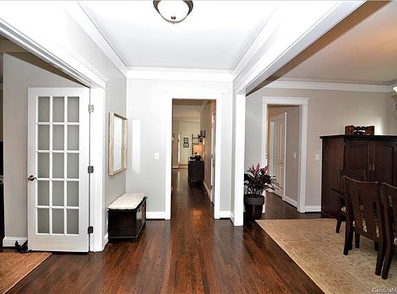 Unique home with modern updates located in historic Baxter on a cul-de-sac opposite lush pocket park and just steps away from community pool, the Village Green, Allison Park playground and trailhead. Architectural design provides efficient use of space and abundant natural light. Kitchen redesign features quartz countertops, gas cooktop, and stainless range hood. Office/Den with privacy French Doors and closet could be an additional bedroom. Plantation shutters, shiplap, crown molding and recently finished hardwoods add warmth and character. Bedrooms two and three feature half bath en-suites. Large, fenced, level lot and outside living area invite outdoor activities. Workshop with electricity. Convenient to village restaurants and shopping with quick and easy access to Sutton Road and I-77.