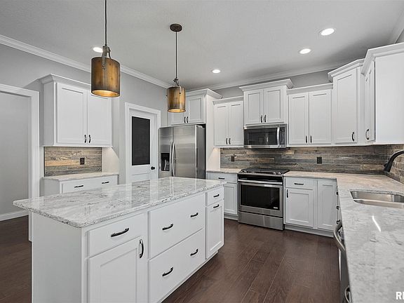 Welcome Home to this pristine, immaculate, newer McCoy Homes 2 story! From the charming curb appeal with the big front porch, this house pulls you in! You'll love the beautiful foyer with barn door & designated office with doors. The great room with fireplace is open to your informal dining and beautiful kitchen. The kitchen has quartz counters, tiled backsplash, stainless steel appliances, and a walk-in pantry. You'll love the contrast of warm & cool, dark & light in this rustic chic home! Off the 3 car garage is your drop zone with lockers and stylish 1/2 bath. Upstairs has 4 large bedrooms, and 2nd floor laundry. The master is an awesome retreat after a long day. The finished basement has a rec room, theater room, 3/4 bath, and ample storage! Enjoy a bbq on your deck overlooking your lovely level yard. This home has it all! Schedule your showing today!
