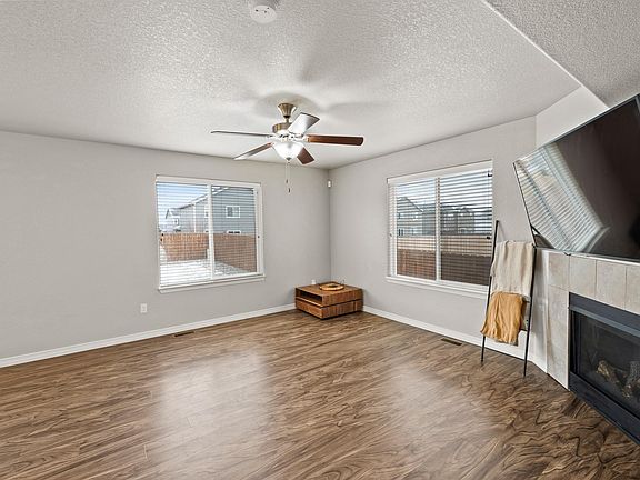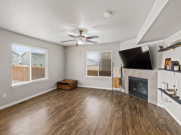 Move-In Ready Two Story Home w/ Open Floor Plan * Main Level Great Room w/ Gas Fireplace * Kitchen w/ White Quartz Countertops, Dark Stained Cabinets, Stainless Steel Appliances, Island, & Pantry * Expansive Master Suite w/ Vaulted Ceilings, Attached Bath & Walk-In Closet * Upper Level Laundry * Luxury Vinyl Flooring Throughout Main Level, Master Bedroom, & 2nd Bedroom * Fenced Backyard w/ Patio, Firepit, & Storage Shed * Central A/C * Water Softner System * Located within walking distance of Grand Mountain School * Quick Access to Peterson Air Force Base, Fort Carson, Powers Blvd, & I-25