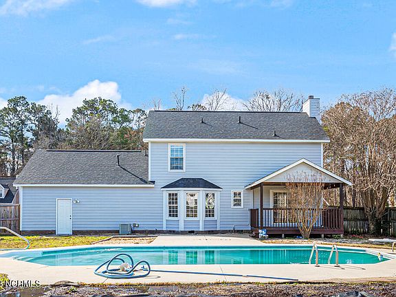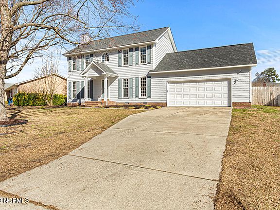 Unleash endless possibilities in your backyard oasis and dive into your dream home at 6145 Lakeway Drive in highly sought-after Jack Britt school district in Fayetteville, NC. This well-maintained home with freshly painted exterior has 3-bedrooms, 2.5-bathrooms and offers functional living space and amenities for both relaxation and entertaining. Main floor features a spacious living room with a wood burning fireplace, a large kitchen with a bay window and eat-in breakfast nook, a convenient powder room, and a versatile den/office or formal dining room with glass doors off the foyer. The second floor showcases a spacious master suite with a walk-in closet and bath shower combination, as well as two additional guest bedrooms and a full bathroom. The home is complete with a large attached 2-car garage with freshly painted epoxy floor. Enjoy summer barbecues and gatherings on the covered deck that leads to a fully fenced, level backyard with an in-ground pool and diving board. 6-foot privacy fence with versatile gate access for large vehicles or equipment. Natural gas water heater and gas pack HVAC. Washer Dryer hookup in garage. Assumable VA 3.5% VA Loan. House professionally cleaned 2/1!