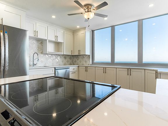 BUYER Financing fell through! LAKE VIEWS, LAKE VIEWS! The Tiara is the Grand Dame of the Sheridan Road strip! The condo has been updated with an environmentally "Green" tankless water heater with added storage. A brand new custom kitchen comes equipped with top-of-the-line stainless LG appliances, porcelain countertops, soft close custom cabinets and a 4 seater breakfast bar. The stunning Lake views are showcased through six windows, creating a captivating entrance into the home. The two new bathrooms feature beautiful flooring, sophisticated extra large showers, new lighting, and new plumbing. The entire unit has been updated with new drywall, insulation, paint, and electrical systems, ensuring a modern and comfortable living space. Grills are allowed on the balconies, providing a perfect setting for outdoor entertaining. The Tiara building has undergone extensive renovations, including new windows, balconies, a revamped lobby, renovated elevators, a new sauna, workout room, pool, and updated furniture. Residents can enjoy the convenience of a 24-hour doorman, indoor garage parking, and proximity to Thorndale beach and The Ardmore bike/walking trail. Additionally, the Waterfront Cafe offers a delightful dining experience, and the express bus stops right in front of the building. Please note that rentals are not permitted, and service dogs are allowed by law. Don't miss the opportunity to indulge in luxury lakeside living at the Tiara. Schedule a showing today and immerse yourself in the beauty and comfort of this exquisite condo.