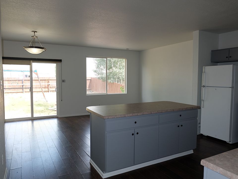 Open floor plan with a 1/2 bath on main level with huge kitchen and living room. New floors, paint. Big 4 bedrooms. Master has a 3/4 bath. Large East facing yard. A/C and forced air. Landlord is easy going. Won't disappoint. With school starting, won't last long!