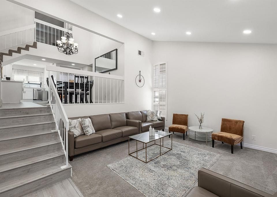 Welcome to Dove Creek Townhomes, a stylish, spacious retreat in the heart of Woodland Hills. This spacious 2-bedroom, 2-bathroom residence offers 1,243 sq ft built in 1975, offering a comfortable living with soaring vaulted ceilings, abundant natural light, and a flowing open layout. An end-unit, it only shares one wall with neighbors. The inviting living room connects seamlessly to the dining area and private patio, creating an ideal space for both everyday living and entertaining. The updated kitchen features modern finishes and ample cabinet space, perfect for the home chef. Upstairs, the primary suite offers generous closet space, while the second bedroom provides flexibility as a guest room or home office. In-unit laundry and an attached two-car garage for your convenience. Community resort-style amenities include lush greenbelts, heated pool, spas and hot tub, and multiple tennis courts. Quiet, park-like vibe with well-kept grounds. Conveniently located near The Village at Topanga, Costco, dining, shopping, and easy access to the 101 freeway, this home combines comfort, style, and convenience in one great package.