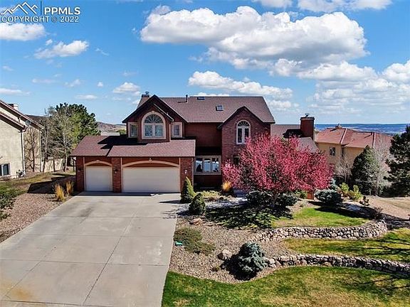 Gorgeous views await you at this beautiful, well maintained and updated home in the desirable, quiet Mountain Shadows! Need space? This home has 5 bedrooms, 2 offices (both qualify as bedrooms if desired), 2 family rooms, plus. MAIN LEVEL: There is a welcoming, open foyer with a tile + hardwood floor entry way, 2 large closets and a sweeping staircase with an office and ¾ bath/powder room conveniently just off the entrance. Entertain in the spacious formal living room complete with gas fireplace or step up to the formal dining room and a balcony with a view. An open concept, eat-in kitchen features lovely, updated granite countertops, stainless steel, upgraded appliances, double ovens, oversized refrigerator, hardwood flooring, and an abundance of cabinet space. Don't miss the hidden wet bar! Attached to the kitchen is a breakfast area and a family room with another gas fireplace and walk-out to a large deck with breathtaking views all the way to the Black Forest and of the Front Range mountains! UPSTAIRS: The master suite is very large with an attached 5 piece bathroom including soaking tub, a huge walk-in closet and another balcony with even more spectacular views. There are 2 additional bedrooms, a full bathroom, plus a small, inviting, loft reading area. BASEMENT: This level boasts LVP flooring, another large office, another large family room, 2 more bedrooms, and a ¾ bath. The walk-out goes to a "secluded" backyard; you can relax in your hot tub. GENERAL: Every detail of this home has been well thought out, from the central vacuum, incredible window treatments, copious storage, whole house HEPA filter, skylights plus. A 3-car garage with plenty of storage, multiple 110 and 220 outlets, and a driveway that accommodates 6 vehicles. Quality abounds in this delightful home! Not only is this location in a quiet, upscale neighborhood that offers true Colorado Mountain living with serenity and wildlife, but is also near shopping, entertainment, and major streets.