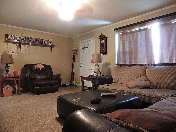 ATTRACTIVE 3 BR/2BA HOME ON 1 ACRE M/L. Located just a few miles from town, this 1,276 sq. ft. home has a nice size living room, kitchen/dining combo with a breakfast nook/sunroom. Living room and master bedroom have carpet and there is laminate flooring in the kitchen and two bedrooms. This home features a metal roof, single attached carport, deck style porch across the front and a large patio covered with a pergola and leads to a nice storage building in back. This home sits on a level lot with lots of shade trees.