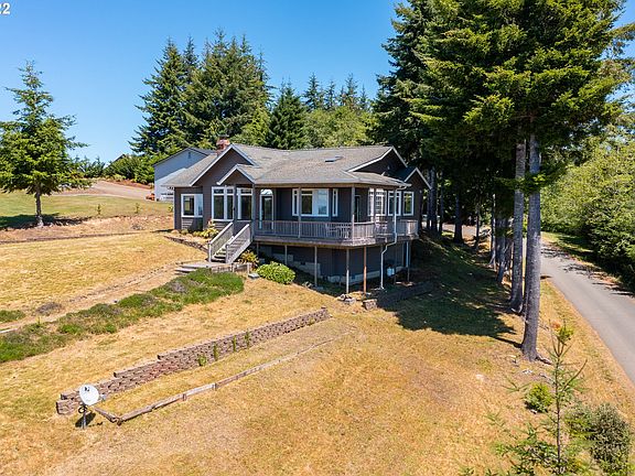 Dunes, lakes, mountains, and ocean views, oh my! There's no place like home with views like these. First time on the market, this unique well-built home features an open floor plan with vaulted ceilings, a gourmet kitchen with pantry, hardwood floors, wood-burning fireplace, propane gas range, and natural lighting throughout the home. The second bedroom has a sliding door and attached bathroom. Corner lot with an oversized garage. Mercer Lake Estates HOA includes a private boat ramp and dock.