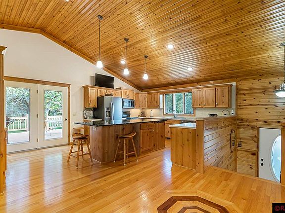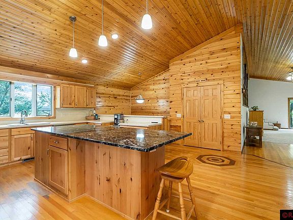 This beautiful Split Level home nestled into 4.25 of partially wooded acres has a plethora of quality custom details to appreciate. From the heated 3-stall Garage, you enter a spacious ceramic-tiled Mudroom which steps up to the front Foyer leading to the upper level open floor plan featuring gorgeous vaulted cedar ceilings and an abundance of large windows. The impressive Kitchen (which conveniently steps out to a 16 x 16 two-level deck) boasts wood flooring, cedar ceilings, knotty Alder cabinets with Wilsonart solid surface tops, a large granite topped center island, a stately custom buffet and a large pantry closet. Wood flooring with custom inlaid detailing continues into the Dining Room which is open to the 19 x 20 Living Room, above which is a skylit loft and large storage closet. Also on the upper level is a Bedroom/Office and a newly installed half Bath. In the lower level, you will find an inviting Family Room with carpet accented by ceramic tile--which also surrounds the gas fireplace. 3 more Bedrooms, a Master Bath (with jetted tub and solid surface topped vanity) and additional Full Bath (both ceramic tiled), cedar storage closets, Laundry and utility areas complete the Lower Level. Exterior amenities include vinyl siding, a wide array of attractive landscaping, raised flower beds surrounding a large fire pit/patio area, and a 24 x 32 pole shed. In addition to propane forced air, a wood burning stove is ducted to heat the entire house as an alternate heat source. If you love country living this is a home you don't want to miss!