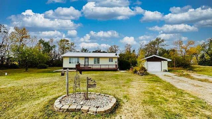 Nestled on a sprawling 6-acre lot in the beautiful landscape of North Dakota, this charming home offers a unique opportunity to embrace the tranquility of rural living. The property is surrounded by stunning natural beauty and provides a sense of peaceful seclusion, making it an ideal retreat for those seeking a serene lifestyle. Upon arrival, you'll be greeted by the expansive grounds, which include lush greenery, mature trees, and open spaces that invite a sense of freedom and tranquility. The home itself boasts a spacious and well-designed layout, with ample room for comfortable living and entertaining. The interior features a modern kitchen, inviting living areas, and large windows that allow natural light to fill the space and offer breathtaking views of the surrounding landscape. Outside, the property offers plenty of opportunities for outdoor enjoyment, whether it's hosting gatherings, gardening, or simply taking leisurely strolls through the expansive grounds. The vast acreage provides ample space for a variety of activities and the potential for creating your own outdoor oasis. With its generous acreage and peaceful ambiance, this property presents an exceptional opportunity to embrace the beauty of North Dakota's countryside while enjoying the comforts of a well-maintained home. Whether you're looking for a place to unwind, connect with nature, or create new memories, this home on 6 acres offers a unique and inviting setting for a fulfilling lifestyle.