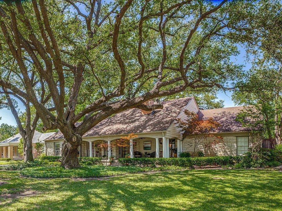 Rare opportunity to own a one-story Austin stone charmer on a 100x176.5 lot with stately hardwood trees, lush green landscaped grounds, and a generous covered front porch. For sale as-is, the home is move in ready, renovate to your taste or build your next dream home. Situated near Preston Center, NorthPark Mall, Love Field Airport, & the Tollway. The home has three bedrooms and three full baths inside & separate detached quarters with full bath perfect for an office. The living room has an original brick fireplace & custom cabinetry flowing into a formal dining room. The kitchen is designed around a long granite-topped island & has a charming breakfast nook with large windows, huge walk-in pantry, & new stainless gas range and double ovens. The spacious family room has beamed and vaulted ceilings, built-in bookcases, & an impressive painted brick fireplace. The updated master suite has a fireplace, full bath & marble countertops and tile, a jetted tub and large walk-in closet.