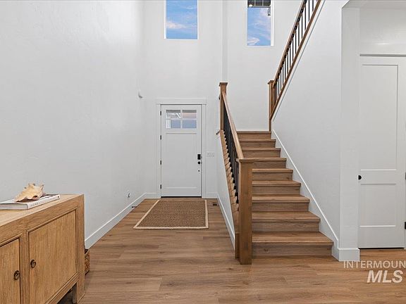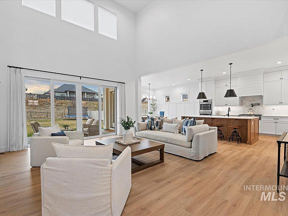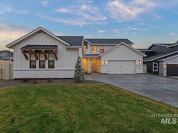 This stunning 2023-built home exudes modern charm with its warm wood tones and timeless shiplap detailing throughout. Boasting 4 bedrooms, 3.5 bathrooms, and 3,298 square feet of thoughtfully designed living space, this property offers both comfort and luxury. The main level features a spacious master suite, an inviting guest suite, and a dedicated office. The open layout seamlessly connects the gourmet kitchen complete with custom cabinetry and quartz countertops to the bright living area with a floor-to-ceiling gas fireplace as its centerpiece. Step outside through the sliding glass doors and enjoy a 1/3 acre lot with no immediate backyard neighbors. Upstairs, you’ll find two bedrooms connected by a Jack-and-Jill bathroom and a versatile bonus room. Both garages have epoxy flooring. Located in the sought after Sky Mesa subdivision with close proximity to the Boise airport and the freeway.