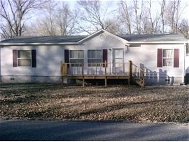 Nice manufactured home with huge deck on back. Detached garage with work shop. Fireplace, like country living.
