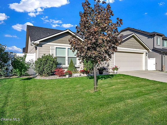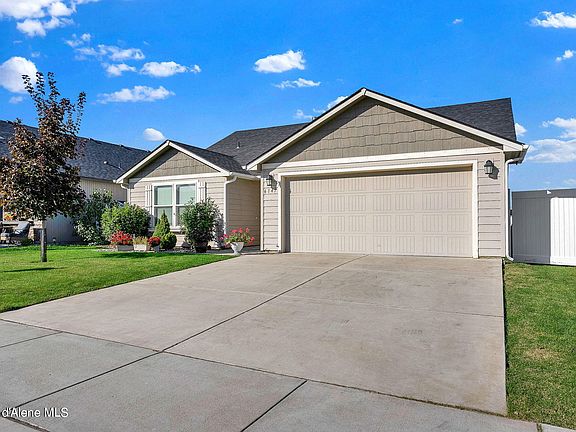 Discover your dream home in the heart of Rathdrum! This charming single-level home offers the perfect blend of comfort and style with 3 spacious bedrooms and 2 well-appointed bathrooms, all nestled in just under 1,500 square feet of thoughtfully designed living space. The open floor plan boasts beautiful laminate flooring throughout the main areas, creating a seamless flow from room to room. Cozy up by the gas fireplace in the living room or entertain with ease in the modern kitchen, featuring sleek stainless steel appliances, stunning granite countertops, and ample storage space. The vaulted ceilings add an extra touch of elegance, making the home feel open and airy. Step outside to your private oasis—a covered back patio perfect for relaxing or hosting gatherings. This centrally located gem in Rathdrum is close to schools, parks, and local amenities, making it the ideal spot for anyone looking for a perfect balance of convenience and tranquility.