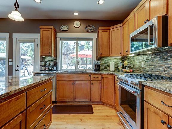 Original owner! Exceptionally cared for and updated lodge style home in Sagewood! Conveniently located on the westside - on the way to Mt Bachelor & the High Lakes - Deschutes River - Old Mill District - schools - restaurants - coffee shops & all that is Bend. Two master suites. Newly remodeled kitchen with granite counter tops, new appliances, Insta-hot water, auto faucet & stainless steel appliances. New wood flooring, carpets and heated tile in master bath. Custom built-in cabinets in the great room. Newly painted inside & out. Large fenced backyard has been redesigned including a fire pit, hot tub & pavers. Light and bright interior with views of the southeast pine trees and buttes. Bedrooms have good separation with the 2nd master bedroom making the perfect guest quarters, den or office with its own bathroom. The oversized 669 sq.ft. two car garage has an additional closed off 500 sq.ft. storage area. A place to call home and be proud of!