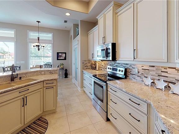 Updated 4 bedroom, 3 bath, 3 car garage w/heated pool on premium corner lot that backs up to a lake that offers a vast variety of wild life for your viewing pleasure. Kitchen is every cook's dream; Custom 42" cabinets that are 14" deep, glass/stone back splash, granite counter tops with an abundance of drawers including 2 sets of 42" drawers on each side of the range. 20" x 20" Porcelain tile through-out except for office/den area has wood flooring. Master bath features large soaking tub, his and her vanities with (real) marble tops and large drawers, granite tops in other baths. Tray ceiling and walk in closets in Master Bedroom. AC replaced in 2016, new pool heater, lanai cage screen replaced in 2017. Pool is surrounded by lush landscaping that provides privacy. Back yard has a separate fenced in area for dogs. This home is just minutes to everything; airport, shopping, schools, churches and I75. Low HOA's and NO CDD fees. This home's features are just too many to list, must see