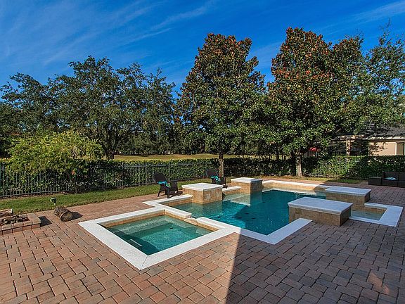 Unbelievable golf front home in the Windermere community of Keene's Pointe - home of the Golden Bear Club (a Jack Nicklaus Signature Course). Absolutely amazing curb appeal with beautiful views of the 10th hole of the golf course within a walking distance of the club. This street is arguably the most desirable in the community and possibly all of Windermere. The property underwent some recent updates to make it even that much more appealing. The home has 4 bedrooms, 3 baths, 2 half baths, office, bonus room, three car garage, walk-in temperature controlled wine room, with huge outdoor pool and spa with its own outdoor pool bath. All of the downstairs rooms open to the large pool deck while the upstairs balcony offers nightly views of Disney fireworks!