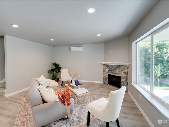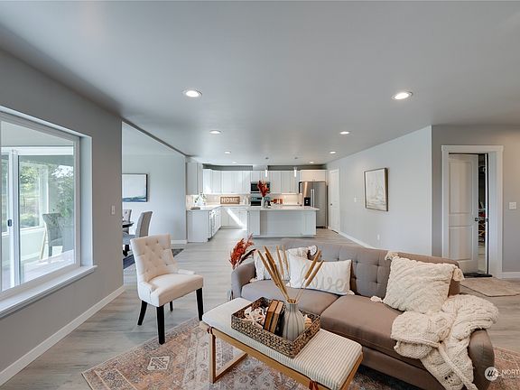 Beautiful brand-new construction in sought after Skyline neighborhood! Just completed and ready for you! Lovely 2 story home with open concept living, dining & kitchen, cool calming color tones plus plenty of natural light. Kitchen with large center island w/seating, stainless steel appliances & pendant lighting. Spacious open living room w/cozy corner stone fireplace. Primary bedroom boasts an ensuite bath w/dual sink vanity, deep soaking tub, separate shower & large walk-in closet. Year around enjoyment on the covered back deck. Large yard has just been hydroseeded. Great location on the edge of Washington Park & close to the San Juan Islands Ferry. Skyline marina includes Marina, tennis courts, access to tugboat beach and parks.
