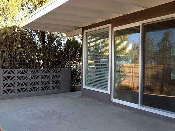 Gorgeous Mid Century Modern gem in great area of Joshua Tree Village. Bright, light filled, with exposed beam ceilings, walls of glass, private patios in private fenced in garden. Big 2 car garage. New floors, paint, bathroom , kitchen, cooling system. Available March 1st. Tenant is responsible for all utilities. No pets & no smoking