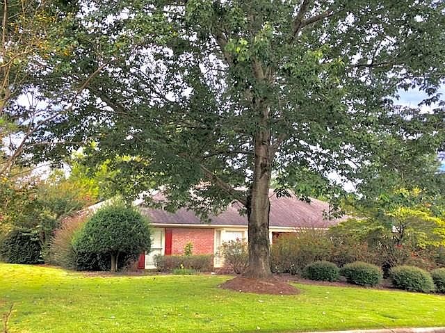 All brick ranch style home in Brookstone S/D. 4 spacious bedrooms with 2.5 baths. Foyer with hardwood floor. Large formal living room AND Den. Kitchen with breakfast bar, eat-in-area, granite counters & stainless appliances. Office w/large storage closet. Large master suite w/granite counters, his/hers dressing areas and walk in shower. Sunroom w/tile floor and lots of light. 2 car carport in the rear. 16x22 Outbuilding. Beautiful landscaping.