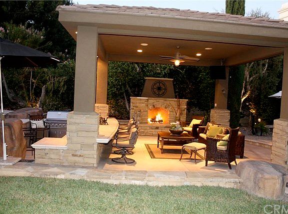 SPECTACULAR YARD! Rare opportunity to own one of the most unique properties in highly desirable gated community of Parkridge! Backyard paradise with multiple entertaining areas was created on this very private over 200 foot deep lot! Watch TV from your swim up bar in the saltwater pebble tech pool that includes remotely controlled spa, slide, and waterfall! Gather by the large stone fireplace in the outdoor room to barbq w/ friends. Additional stone patio area includes fire ring and another built-in barbeque for the overflow! Concrete play area behind pool is large enough to shoot hoops or you can toss a ball around on the lawn. Home is approx 3486 square feet with 5 bedrooms PLUS a large office/workout room (or 6th bedroom) and 4 baths. Kitchen includes granite counters w/ center island and customized cabinetry w/ pull out organizers. Extensive crown molding throughout most of home and plantation shutters in living room, dining room, nook, and family room. Rich wood floors in living room, master, office/workout room, stairway, and upstairs hallway. Chiseled travertine floors throughout most of downstairs and all baths. Beautiful French doors in dining room lead out to entertaining area. Home is turn key! No Mello Roos! Coveted Villa Park schools!