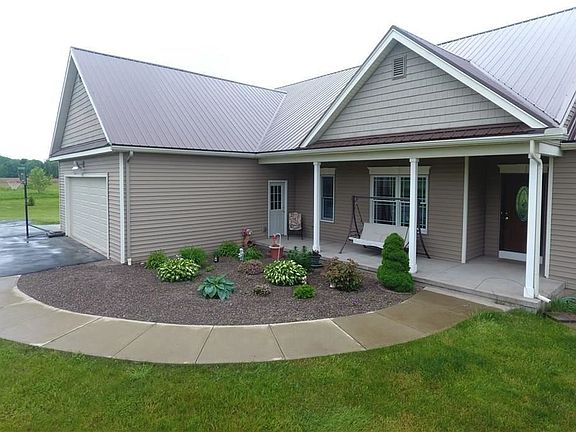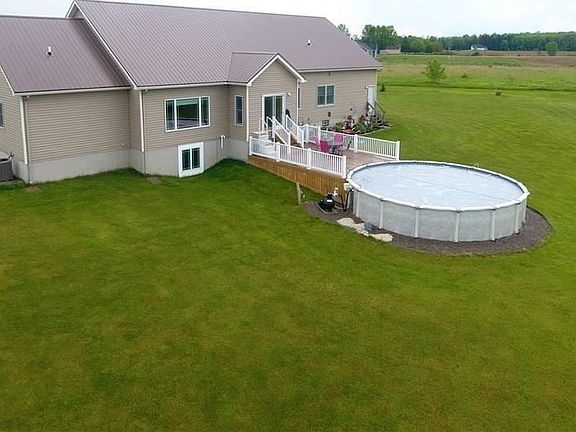SPRAWLING 3 bedroom 2 Full Bath Ranch on 7+ Acres with a 3.5 Car attached garage ! OPEN FLOOR PLAN features a HUGE GREAT ROOM with step tray ceiling and wall of windows overlooking the rear yard! Maple kitchen w/ abundance of cabinets & counter tops including breakfast bar ! Spacious eating area w/ sliding door lead to the Trex deck and sparkling pool ! MASTER SUITE w/ tray ceilings & Amazing bathroom that boasts a soaking tub, dressing table, double vanity & Glass enclosed tile shower!! HUGE WALK IN CLOSET! 2 more good sized bedrooms w/ double closets! Double doors lead to the Den / Office with wood floors (could be a 4th bedroom!) Full basement with poured walls and EGRESS WINDOW for future expansion! NEWER Lifetime METAL Roof !! Thermopane windows with arts and crafts built in mullions!