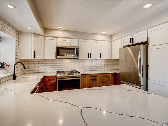 This is the one! Beautifully remodeled 2-story home only six minutes away from Olde Town Arvada with NO HOA. Fall in love with the low maintenance porcelain tile wood-style floor throughout the open concept first floor. The custom kitchen with stainless steel appliances, a waterfall quartz counter and solid wood cabinets is a culinary dream. Take your shoes off and find your way up the recently finished stair case, take a quick peek of the exquisite light fixture and relax into the premium carpet. The main bedroom offers a spacious bathroom and walk-in closet. The Jack N Jill bathroom connects two bedrooms, one featuring a window seat to enjoy a book or cup of coffee with the sunrise. The basement is the perfect get-away featuring a 3/4 bathroom and egress windows, ready for any guests when the time comes. Retreat out in the backyard on a newly poured patio, enjoy the spacious grass and store all of your toys that don't fit in the garage workbench in the shed. This is an absolute must-see, with all of the beautiful upgrades you cannot pass this one up!