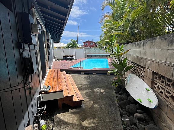 3 bedroom 2 bathroom house located on a quiet dead end street in Coconut Grove neighborhood of Kailua. Fully fenced in backyard with private pool. Less than 1 mile to Kailua Beach and minutes to Kailua Town and Kaneohe Marine Corps Base. Owner to provide Wifi, gas for kitchen stove, yard and pool service. Renter is responsible for water/swerer and electric bill. 1 year lease required. No smoking.