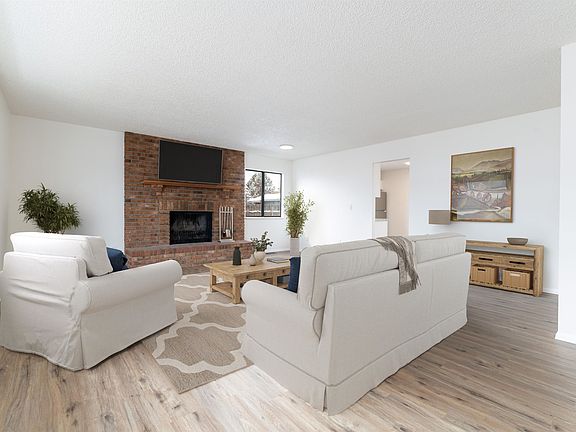 Welcome home to this extra clean, newly updated and move-in ready home! As you enter the large living room, you will love the brick fireplace, the all-new flooring and paint throughout. The updated kitchen with an eat-in bar and dining room has an abundance of natural light and new cabinets, appliances and lighting. The primary suite consists of a walk-in closet and updated en-suite bathroom. Updates also include a new water heater, new toilets and vanities, new lighting, new electrical switches and outlets and much more. The freshly painted exterior, garage with cabinets, covered patio and shed add to the charm of this ranch-style home. Schedule your private showing today!
