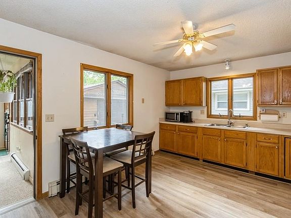 Location, location, location.  If you want easy access to everything Coralville and Iowa City has to offer, this cute ranch style home has it. 2 spacious bedrooms, 1 bath home with natural stained wood siding. Eat in kitchen has a large pantry closet and laundry closet with Bosch front load washer and dryer units.  Surprising amount of storage in this home with 2 closets in the 2nd bedroom and deep above closet cupboards in both bedrooms.  Bathroom has newer toilet (2022), new fixtures and tiled bath surround.  Home has an added 13 x 13 Sunroom accessed through a charming vintage style French door.  Sunroom walks out to a lovely 11 x 15 deck overlooking the back yard. Clean slate backyard surrounded by mature trees great for bird watching.  Clean full cement driveway with side parking pad and nicely maintained 1.5 car garage with opener and keypad is perfect for extra storage or a mini workshop in addition to storing one car. Roof was new in 2020. 1 block from Coralville Public Library, 3 blocks from ST Morrison Park and bus stop less than one block to the north. Short walk to Coffee Shops, Hurts Donuts and much more!