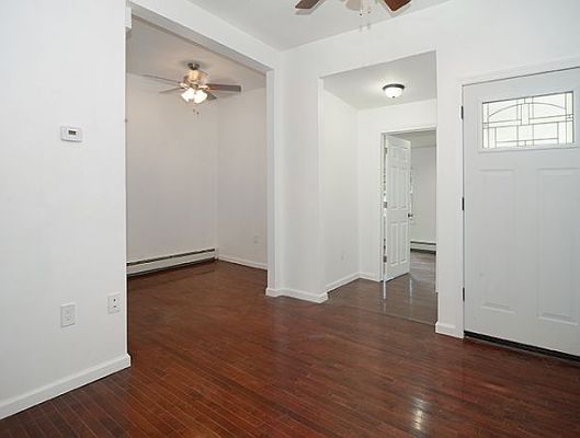 Gut renovated 1bed+den/1bath features granite counter tops, stainless steel appliances, cherry cabinets, Jacuzzi tub, washer/dryer, hardwood floors throughout. Special bonus/storage room and a very large private yard perfect for alfresco dining. Building is located on a beautiful tree lined street close to NJ transit bus (to NYC) stop. 5 year U. C. tax abatement. Heat and hotwater is included in the maintenance fee.
