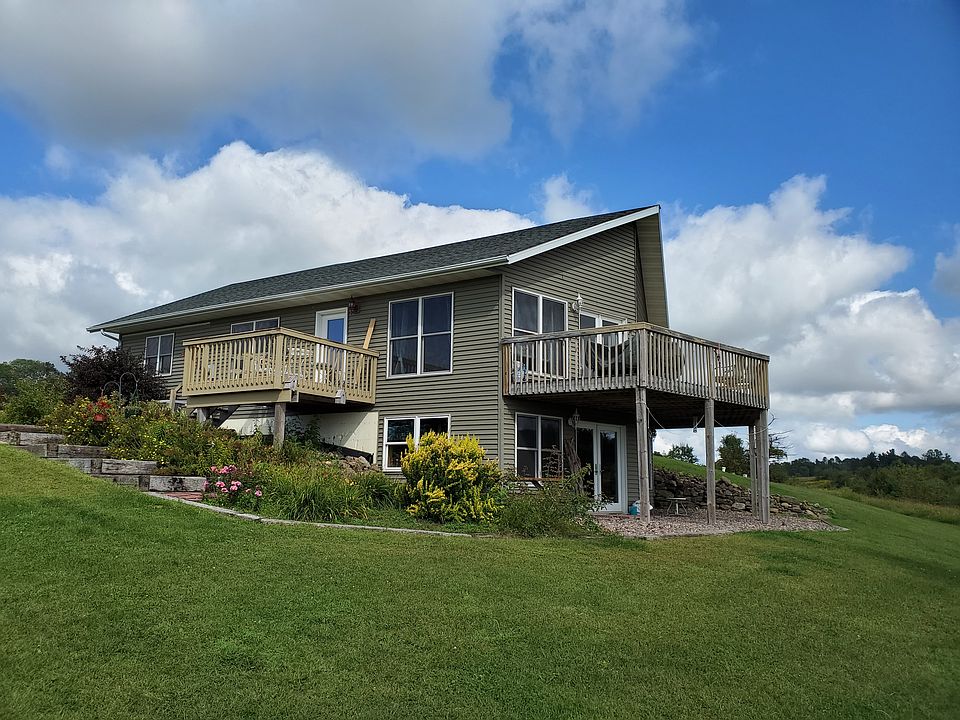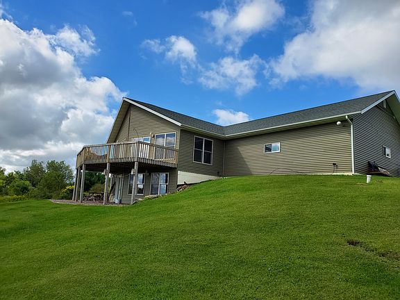 Apple trees and Berry bushes abound at this beautiful country home near Chetek, WI. Open concept 2 story home. Two bedrooms at present but more could be added downstairs. Full bath up and a 3/4 bath downstairs. This home was built very well with poured walls for the basement and everything is treated with foam insulation. Central air, air exchange system and forced air propane heat. Attached garage is large and open with a workbench on the back side. Two garage doors both with openers. House comes with 40 acres, additional 118.23 acres available for a total of 158.23 acres. Some farm land and some woods along with a beautiful valley and mowed trails throughout. Property was used as a private shooting range so there are targets and a shooting bench on the property. Farm land is rented out to pay property taxes or you can use it yourself. There is some minor storm damage to some siding but we are repairing that soon. Come and take a look, you will fall in love!