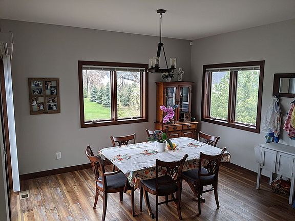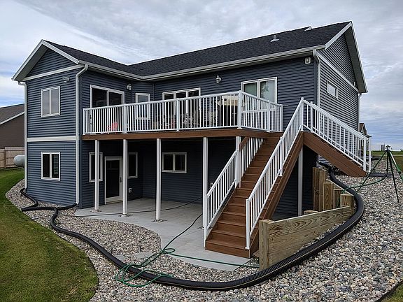 Beautiful rambler with walk out basement situated on 1/2 acre lot. Main level has a master suite with two additional bedrooms and full bath. Master suite features an attached bath with custom tile shower and two closets (one standard size, one walk-in). The laundry room is situated on the main level, and there are additional laundry hook-ups in the downstairs utility room. The walk-out basement is finished and has two bedrooms and a full bath. The basement also has a large family room, plumbed in for the addition of a wet-bar, and featuring a bump out with large windows for letting in a lot of natural light. From there, walk out onto the poured concrete patio with access to the deck above. The patio area is also wired for a hot tub. 12' tall ceilings in the garage make for great storage space in the attached heated 3 car garage with oversized garage doors. The kitchen overlooks the upstairs living room and features beautiful quartz countertops and dark stainless steel appliances. The adjacent dining bump-out has access to the upper deck, made of maintenance-free materials and featuring a gate.