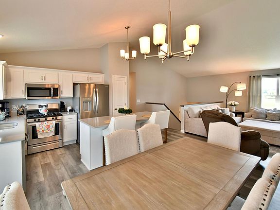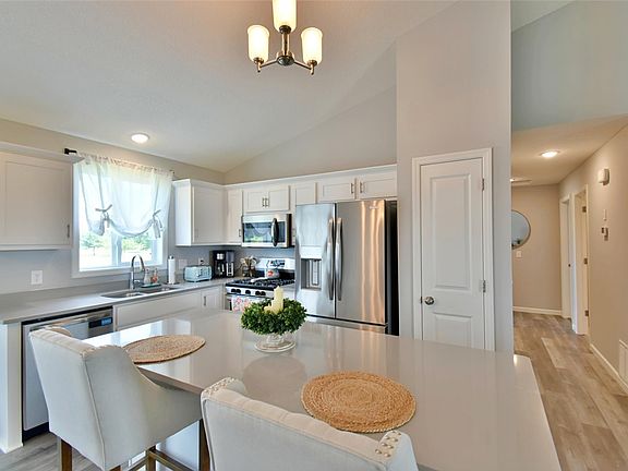 Come and check out this beautiful, fully finished, roomy 5 bedroom (3 on one level), 3 bath house in the gorgeous Water's Edge Development. You get city amenities with a rural feeling (not uncommon to see deer in the neighborhood). Kitchen features quartz countertops with stainless steel appliances, gas stove, with a sit up bar. The vaulted ceiling encompasses the kitchen, dining and living area. No one will build behind you as it is a park with a play gym and ball field. Miles of walking and biking area's.