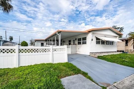Well Maintained Double Wide in Fair Lane Acres, an Over 55 MHP. 2 Bedrooms, One & half Baths, Laminate Flooring throughout. Freshly Painted, Large Lanai with Laundry room & Workshop. 1 Car Attached Carport, Paved Driveway. Community Center includes Heated Pool, Shuffleboard, Resident Activities: Bingo, Games, Cards. Up to 2 large Pets allowed, low HOA fee, $122 per month.