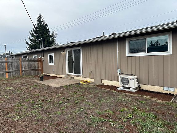 This updated Springfield duplex is in a really great neighborhood in desirable Thurston, close to Thurston High, Thurston Middle, and Ridgeview. Large windows provide lots of natural light! Kitchen opens in to the living room! Sliding glass door goes out to the private fenced back yard and concrete patio area. Perfect for the BBQ! LVP flooring throughout! Ductless heat pump with AC! Fresh paint! New blinds! Kitchen has custom cabinets and countertops! Extra closets in the hallway for additional storage. Bathroom off the hallway. Brand new bathroom! New tub and shower surround, new toilet, new mirror and a new vanity! Both bedrooms have large closets and ceiling fans! Finished single car garage with washer and dryer hook ups. NO pets and NO smoking (cigarettes, marijuana, e-cigarettes) at all on the premises. This is a great unit that won't last long! First full months rent and security deposit due at move-in. Application required for each person 18+. $45/non-refundable application fee.