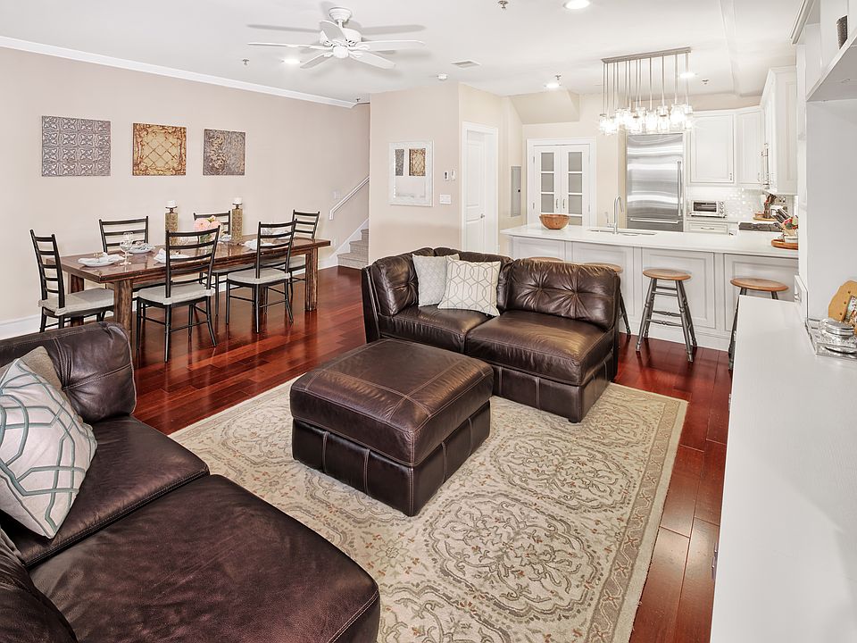 Welcome to an elegant & very rare 3BD/2.5 BA duplex home with a private entrance, heated garage and over 2000 SQFT of living space. This distinctive home features entertaining areas on each floor which can allow for grownups to socialize on the first floor while kids can play, watch a movie or get some uninterrupted sleep on the second floor. Both living rooms are upgraded with designer custom built-ins. The kitchen has been completely updated with a stainless steel Subzero fridge, Viking appliances, under cabinet lighting, quartz counter-tops, tiled back-splash, expanded breakfast bar and a large walk in pantry that you may only find in a suburban home. The first floor also includes a custom finished bar with wine fridge and liquor cabinet. The second floor features a family room, three bedrooms and two full bathrooms. There is a second entrance to the unit that facilitates quick and easy access to the garage and elevator. Other features of this amazing home include crown molding, recessed lighting, Brazilian Cherry hardwood floors, designer paint color schemes throughout, dual zone heating, brand new hot water heater and washer/wryer and a deeded SUV size parking spot #1 in the heated parking garage. In addition, Fields Landing is a professionally managed elevator building and offers an onsite gym. Conveniently located in the heart of midtown Hoboken with easy access to NYC transportation and a short distance to quaint shops, restaurants, parks, paddle and tennis courts and all the community feelings Hoboken has to offer.