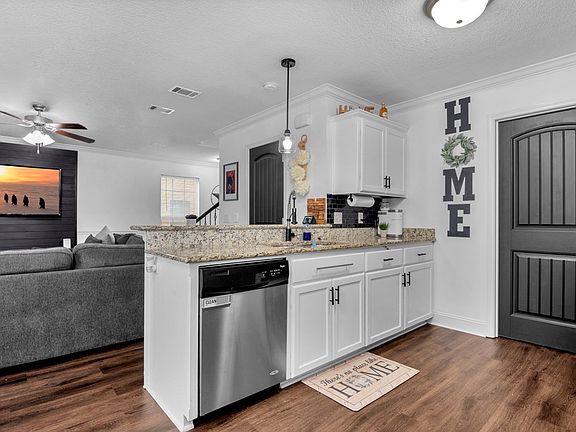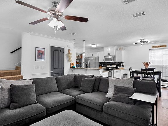 Welcome to this beautifully updated 3 bedroom, 2 1/2 bath home located in the desirable Griffin Park Subdivision in Hinesville. Upon entering you will be greeted with an open concept floor plan that boasts a large living room with a gorgeous ship lap accent wall that leads into the kitchen which features newly painted white cabinetry and granite counter tops. Throughout the main downstairs living area the flooring has been upgraded to luxury vinyl plank. Upstairs has a flex room/sitting area for all of your entertaining needs along with all 3 bedrooms. The owners suite is accented with tray ceilings and crown molding while the bathroom includes double vanities, separate shower, and garden tub. Outside you will find a spacious fenced in backyard with a screened in porch to enjoy the outside! This home also features a Wyze smart home system that turns on the sprinklers according to the weather and soil for your convenience. This is located just 5 mins from Fort Stewart!