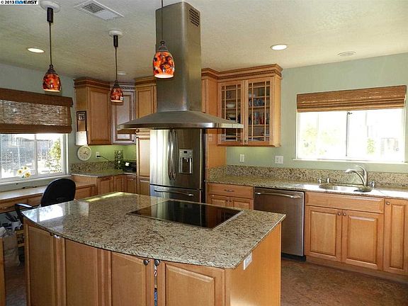 Enjoy life on the water in this nice single level home. Private dock and deck with access to lagoon. Open concept floor plan with remodeled kitchen featuring stainless steel appliances, granite counters and large center island. Beautiful stamped concrete floors. Spacious sunroom offers additional living space. Private court yard entry with garden and patio. Located near shopping, elementary school and ferry service to the Bay Area