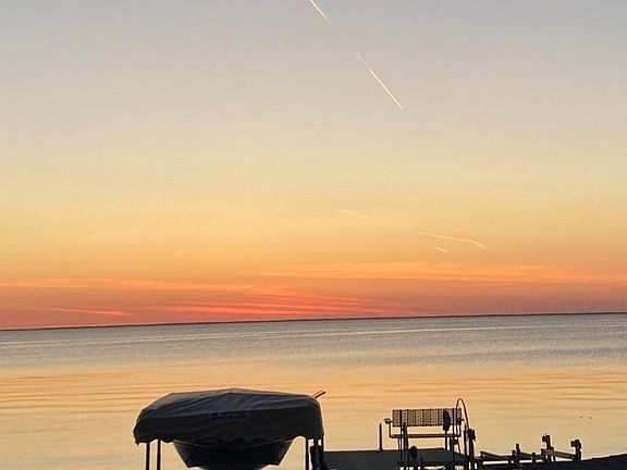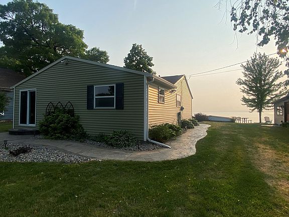 Sand & Sunsets! Best of both in your own yard. 60' of SAND BEACH on the Bay of Green Bay includes a boathouse, sea wall & dock (4 x 48 dock with 8 x 8 sundeck and bench not included but negotiable). Recently remodeled cottage has 3 bedrooms, 1 bath and laundry area. Open concept living/dining room allows you to sit, relax and enjoy breathtaking water views. Kitchen with pantry and water views. Plenty of storage. Stamped concrete patio with awning for entertaining. Spacious backyard with concrete firepit and detached garage. Professionally landscaped. Gutters with aluminum guards, solar lights and wired invisible fencing.