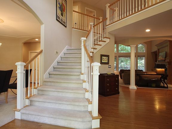 New England style charm on a beautifully wooded cul-de-sac with amazing curb appeal describs this home. An oversized entry way with open stair case leads you into the home, while the large windows fill the home with light . The high ceiling make the large open kitchen living area a wow! The cute sunroom just off the kitchen is another special feature of this home.The main floor master suite,dinning room and an office with french doors complete the main level. An open landing, 3 bedrooms all with private baths finsih the second floor. A large walk out basement with a full bath and tons of storage makes this a great family home.