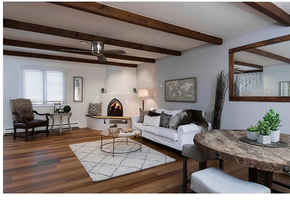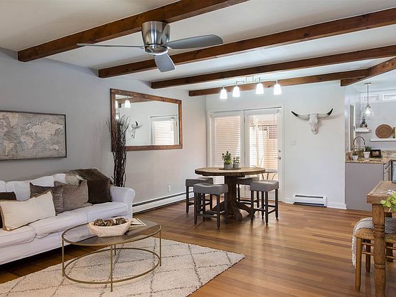 Located in the 7 unit Solamente Plaza condominium complex just a ¼ mile from the heart of downtown Santa Fe this 2016 remodeled 1500+ square foot 2 bedroom 2 ½ bath 2 story, townhouse style condo is an ideal location for a permanent residence or a lock and leave second home. Walk in to find a great room with hardwood floors, beamed ceilings, a diamond plastered wood burning kiva fireplace, designer powder room, custom gourmet kitchen with all new stainless steel appliances including counter depth refrigerator, Bosch 5 burner gas stove, Bosch dishwasher, custom cabinetry and granite countertops. Top it off with an intimate private patio just off the kitchen. Head upstairs to two very large bedrooms each with en-suite bathrooms, one with a large walk in closet. Also is laundry with brand new Bosch washer and dryer. Included are two off-street parking spaces. HOA is currently $403 per quarter. An idyllic turnkey property for Santa Fe living.