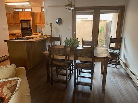 Welcome to your new home in the heart of Downtown Santa Fe! This spacious 2-bedroom, 2.5-bathroom townhouse offers the perfect blend of modern comfort and traditional charm. Located just 6 blocks from the vibrant Santa Fe Plaza and a stone's throw from the Fort Marcy Recreation complex, this prime location puts you right in the center of all the action while still providing a peaceful retreat on the North Side of town. Step inside to discover a freshly painted interior with new floors. The first floor welcomes you with a cozy living room featuring a classic kiva fireplace, creating the perfect ambiance for chilly evenings. The adjacent kitchen boasts ample counter space, making meal preparation a breeze. A convenient half bath adds to the functionality of the main floor. Upstairs, you'll find two generously sized bedrooms, each accompanied by its own full private bath, offering privacy and comfort for all occupants. Whether you're hosting guests or enjoying quiet relaxation, this layout provides the ideal living space for your needs. In addition to the newly installed mini-split AC units for customized climate control, this home also features hydronic radiant baseboard heating, ensuring year-round comfort in any season. The property owners are seeking a responsible, long-term tenant to enjoy this beautiful space. Small pets are welcome with an additional deposit, making this the perfect place to call home for you and your furry companions. Don't miss out on the opportunity to experience downtown living at its finest. Schedule a viewing today and make this exquisite townhouse your own! Looking for long term stable tenant. The entire complex (7 units) is non smoking. There is off street parking. Small pet may be considered.