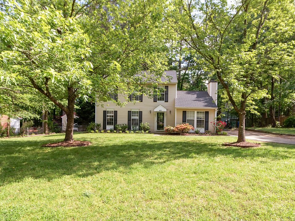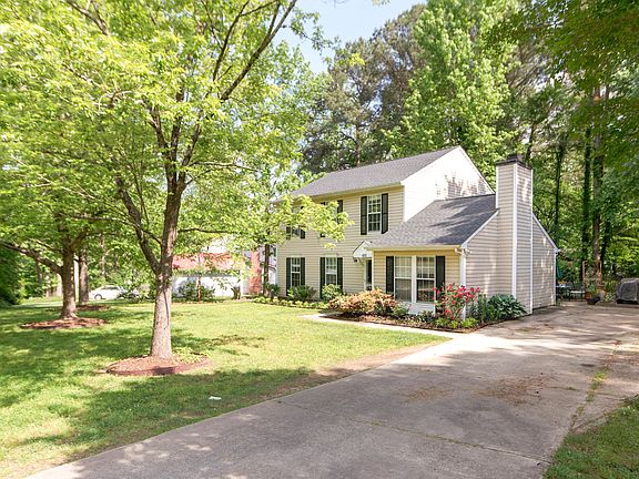 Gorgeous South Durham home near Southpoint Mall and I-40 on a huge yard totally in bloom! Family room w a fireplace and new carpet, formal living and dining rooms w new flooring, dining has crown and chair rail molding. The kitchen has white painted cabinets, granite countertops, and stainless steel appliances and a breakfast room w a new edison bulb light fixture. Fresh paint! Lovely afternoon shade on the back porch to enjoy the lilys. Near Pinewood Park w a playground for the kiddos and dog park for the doggos!