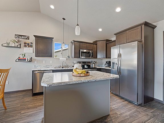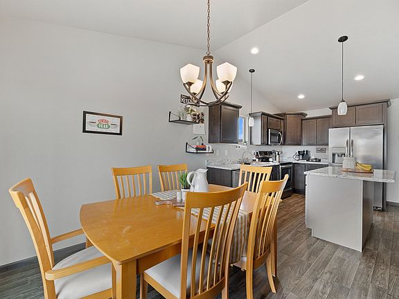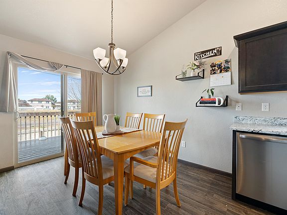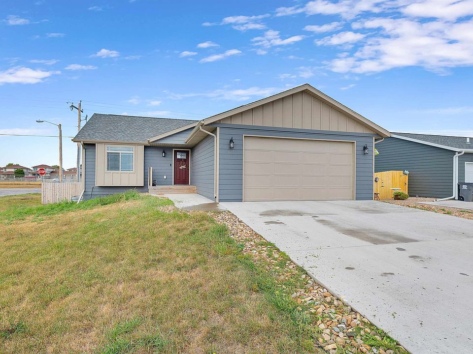 Listed by Shauna Sheets, KWBH, 605-545-5430. Spacious ranch style home with a finished basement on a corner lot near EAFB! *4 bedrooms, 2 bathrooms and 2,184sqft *Radon system in place, maintenance free siding with board and batten accents, quality windows, 30 year architectural shingles and more! *Well thought out floorplan with the living room as the center of the home with added living space on one end and sleeping quarters on the other *Vinyl flooring, vaulted ceilings, neutral color scheme and powder coated metal railings throughout this space *Comfortable living room flows into the kitchen and dining areas- great set up for entertaining *Corner kitchen with mocha colored cabinetry with crown molding, stainless steel appliances, a walk in pantry for storage and a breakfast island for added seating *Cozy dining area with slider door to back yard *Main level master suite with large closet and private bathroom access *1 additional bedroom on this level *Main level laundry/mud room