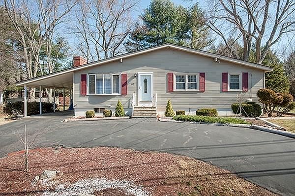 Back on the market due to buyer financing. This fabulous house is ready to move in! Bright and open Contemporary Ranch home is beautifully updated and renovated with modern features, offering easy one floor living, and a beautifully finished lower level with family room, den and modern fully tiled full bathroom. 2015 kitchen updates include new cabinets, granite counter tops and SS appliances. Cathedral ceiling, beamed living room, with modern mantel fireplace, opens to dining room and kitchen. This home has vinyl siding and replacement windows. There is a good size level yard, great for playing and summer barbecues and large storage shed. Property is located in an easy commuting distance to Rt.9 and the Mass Pike Exit #12, and is very close to Jericho Hill Recreation Area.