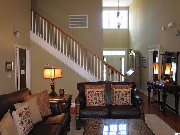 Whether entertaining friends or relaxing in front of the fireplace, this spectacular lakeside home and floor plan offer something for everyone. Beautiful wood floors and soaring ceilings accent the large living area. The central vacuum system conveniently runs throughout the house. Double ovens, fully trimmed cabinetry, Corian countertops, a granite topped island, recessed lighting and a huge breakfast nook make this the kitchen of your dreams. Just adjacent to the kitchen is a large sunroom with multi-purpose potential. The master bedroom features a sitting area, tray ceiling and 2 walk-in closets. Vaulted ceiling, a jetted garden tub, walk-in shower along with his and hers sink and vanity areas make for a wonderful master bedroom suite. The second bedroom and full bath on the main level are situated on the opposite side of the home offering privacy for guests or an excellent in-law area. Upstairs offers 3 additional bedrooms (the bonus room is the 5th bedroom), 2 additional bathrooms and walk in attic spaces which provide excellent storage areas. Step outside onto the sprawling deck which overlooks the completely fenced yard and lake, perfect for entertaining. Located in a cul-de-sac this home is perfectly situated in a popular south end community with beautiful lakes, mature trees lots of green space and is just minutes to the Surfside Beach Pier and white sandy beaches. Shops, restaurants, the waterway, golf courses, entertainment, Market Common and the Murrells Inlet Marsh Walk are all within easy reach. Square footage is approximate and not guaranteed. Buyer is responsible for verification. Brokered And Advertised By: Coldwell Banker Chicora SS Listing Agent: Kristin Owens