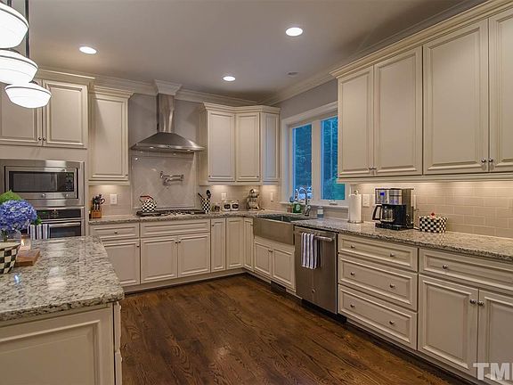 Gorgeous home in the heart of Raleigh! Gourmet kitchen w/granite c-tops, tile back splash, lots of cabinets, pantry & center island. Beautiful formal dining room w/built -in cabinetry. Open main level w/hardwoods & gas log fireplace. Awesome master suite w/walk in closet, double vanity, double shower heads. First floor guest suite. 2nd floor entertainment room w/separate study & huge 3rd floor bonus room. Unfinished attic space perfect storage or additional room. Fenced in back yard, side deck & patio.