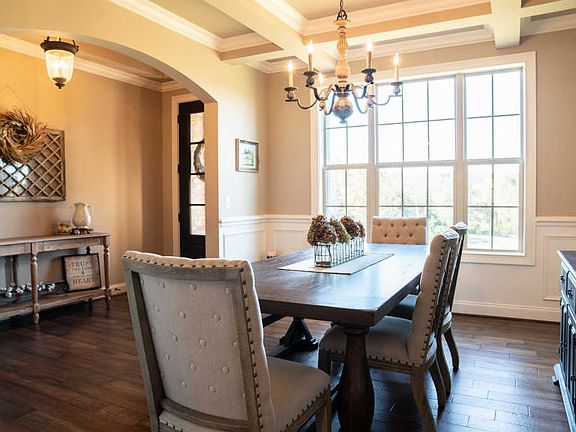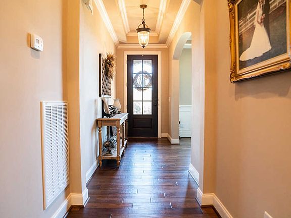 All brick home on 5.5 peaceful, country acres with lake view, custom built by Frank Batson in 2013. One-lane, dead end road offers a quiet, park-like setting to come home to, with public hunting access, turkey and deer frequent visitors and the sounds of geese, frogs and ducks to accompany stunning sunsets from your private, covered back deck. The interior features coffered ceilings, hand-scraped hardwood flooring, a walk-in pantry, extra storage and great flow for entertaining & so much more.