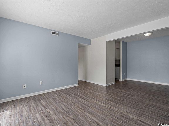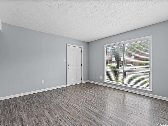 This updated first floor condo with 2 bedrooms and 1 bath is a perfect opportunity to live close to Coastal Carolina University. Situated on a dead end street off of Hwy 544 , this property is less than a quarter of a mile to Coastal's football stadium and half a mile to the academic buildings. The unit has been updated with LVP throughout and painted a popular gray. The kitchen features white cabinets and a white tile backsplash and the refrigerator conveys. There is a small laundry room with the washer and dryer included. The main bedroom has a walk in closet. The bathroom has been updated with a tile shower, a beautiful white vanity and a tile backsplash and medicine cabinet. This building had a new roof in 2020. HOA includes building insurance, water/sewer, trash pick up, and pest control. This is the affordable move in ready option you've been looking for!
